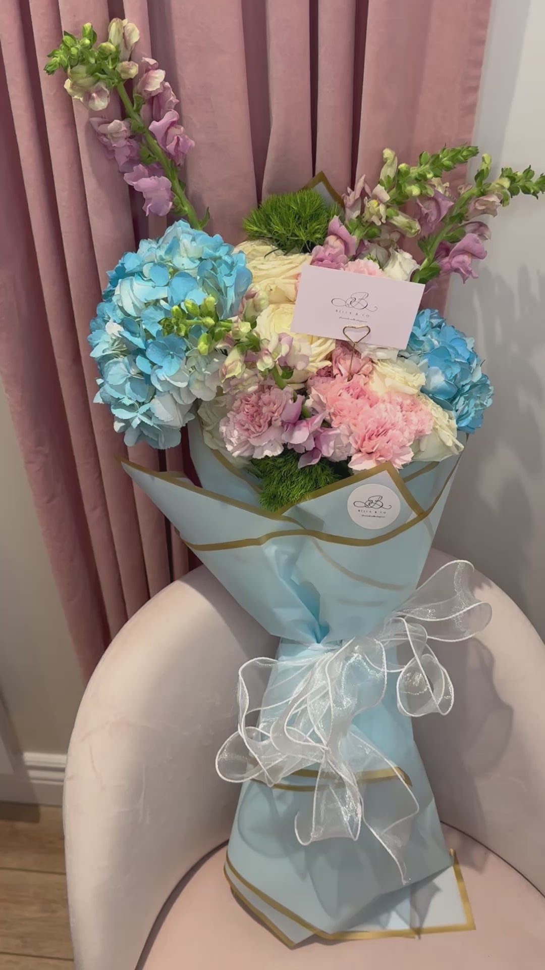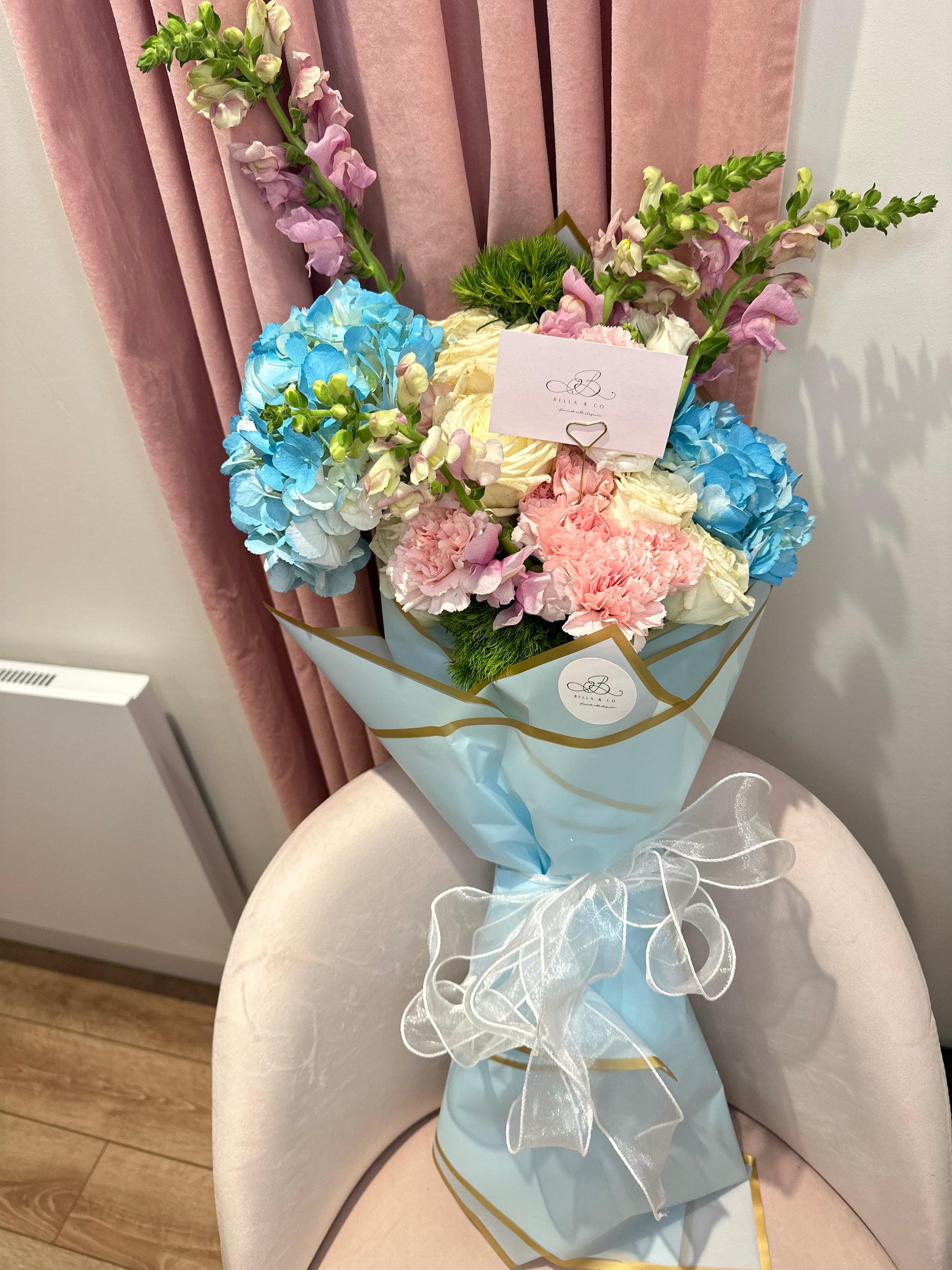 Discover the magnificent Bellagio bouquet, composed of delicate hydrangeas with pink and purple flowers. The best choice for a bouquet that will bring softness and elegance to all occasions. Please your loved ones with this unique and refined composition.