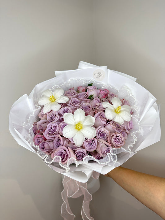 Roses with baby breaths